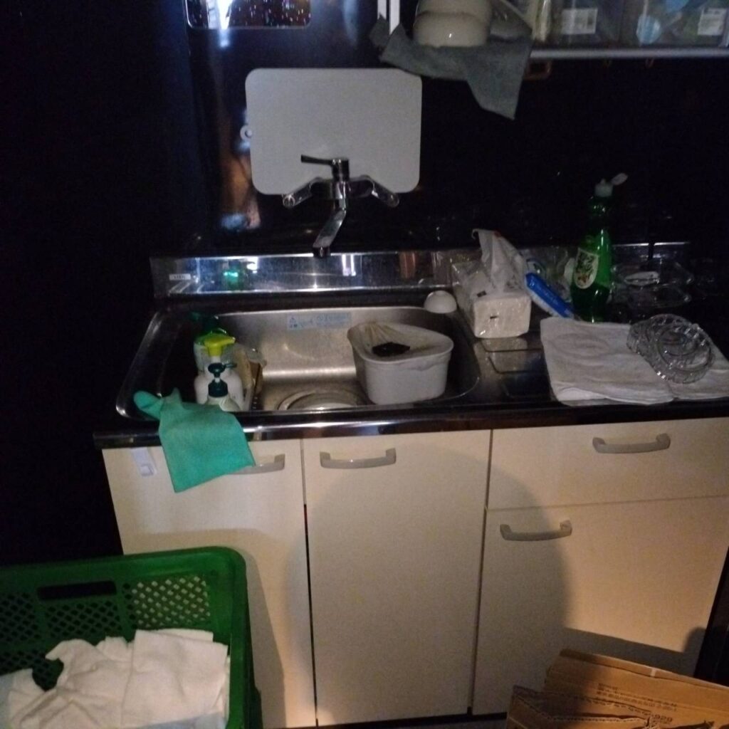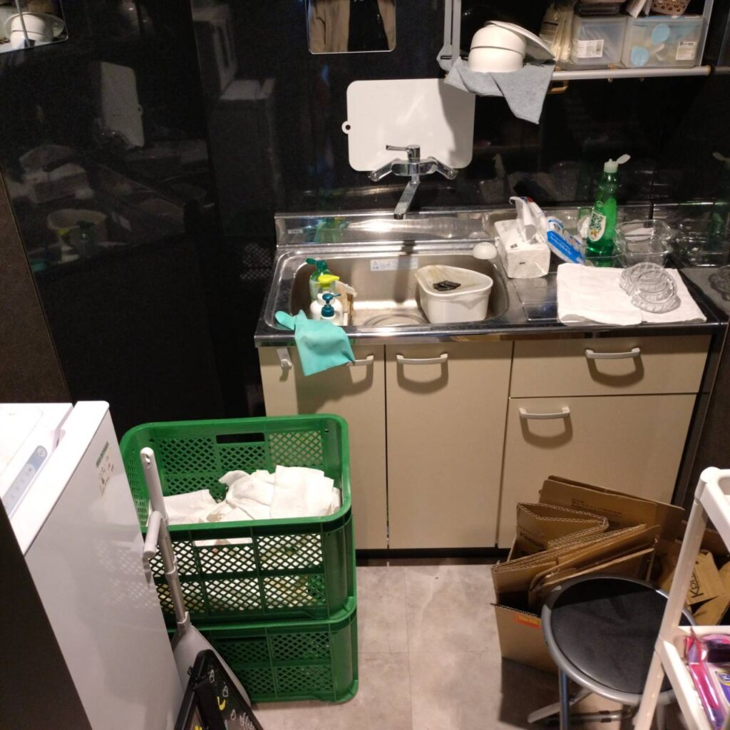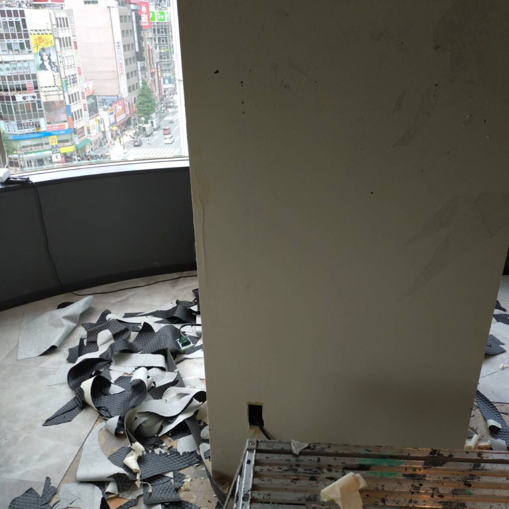 改装中  ・コの字カウンター(天板が光るタイプ)を1部残し解体(電気回路は残したまま) ・個室解体 ・店内全体カラー変更