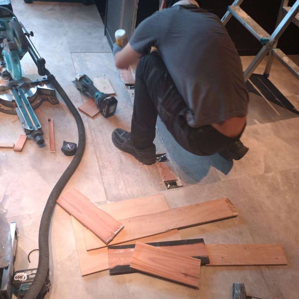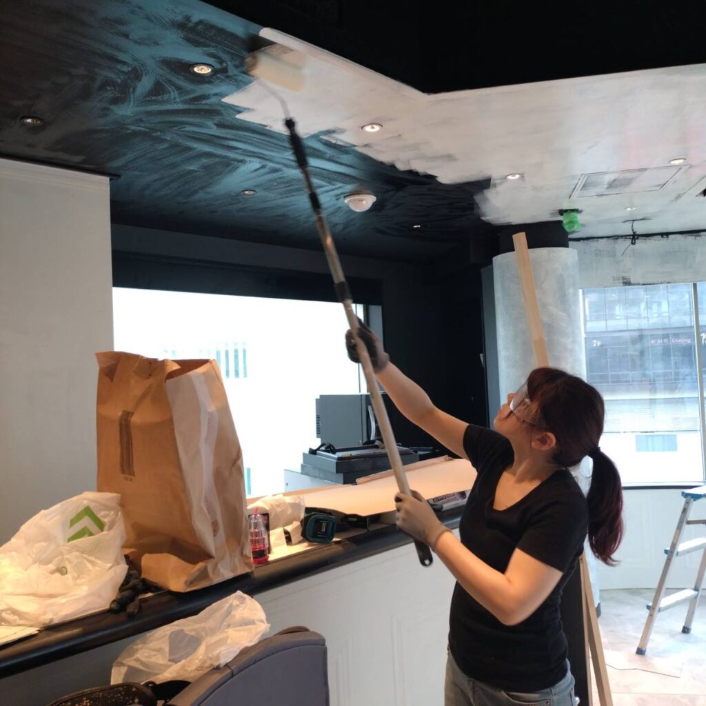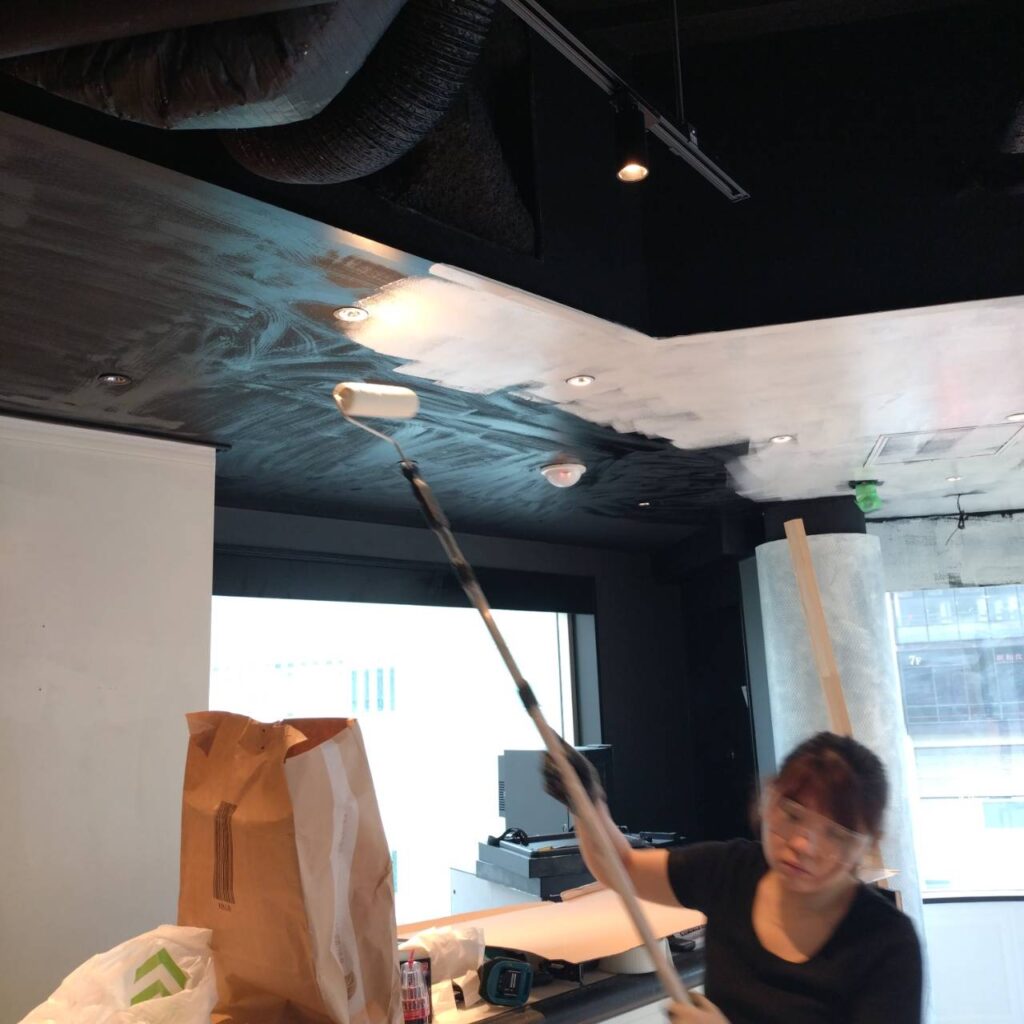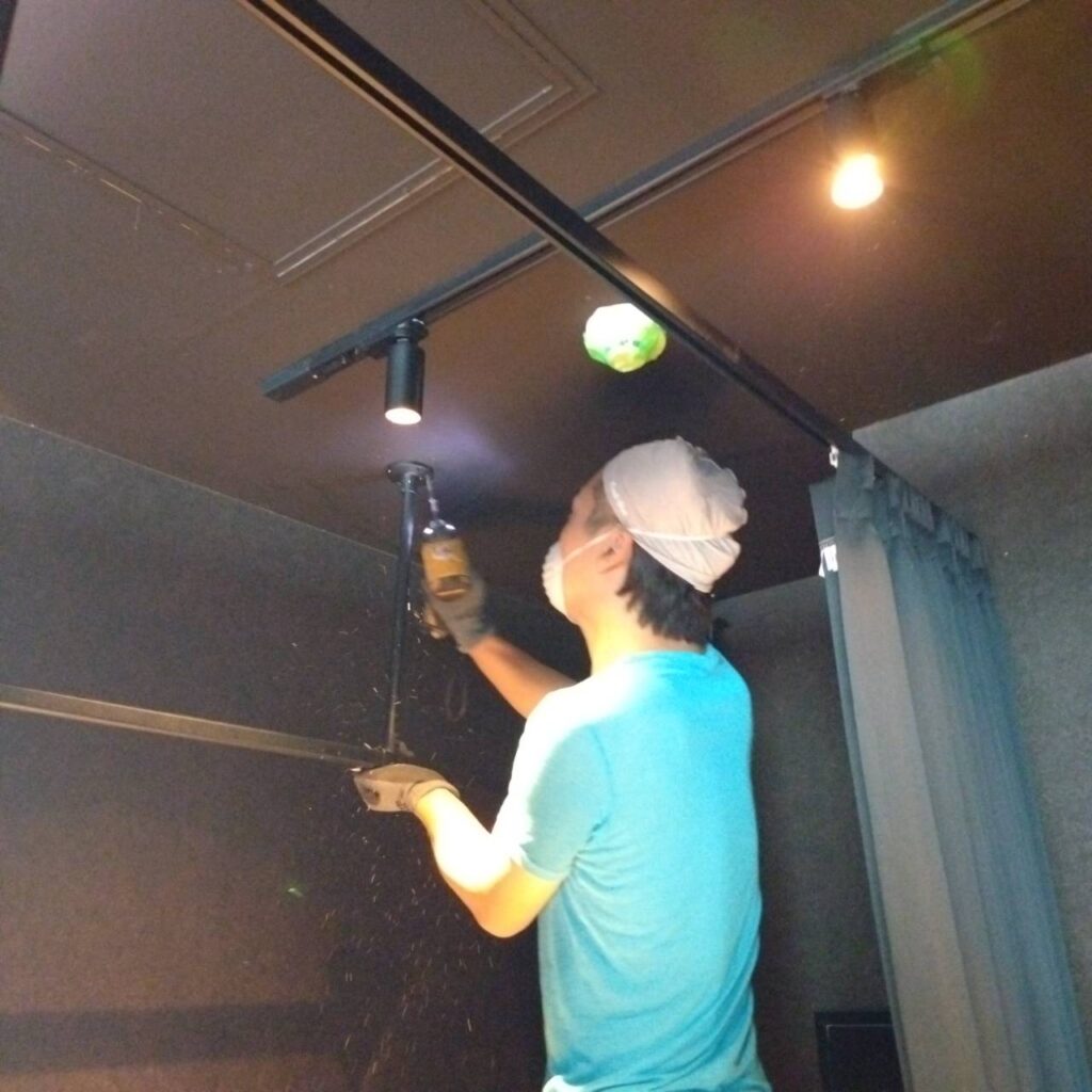 ・デザインクロス貼り ・床損壊部分補修 ・水道工事 ・電気工事 ・高所看板作業